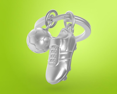 Focicipő labdával, ezüst- Kulcstartó - MTM909