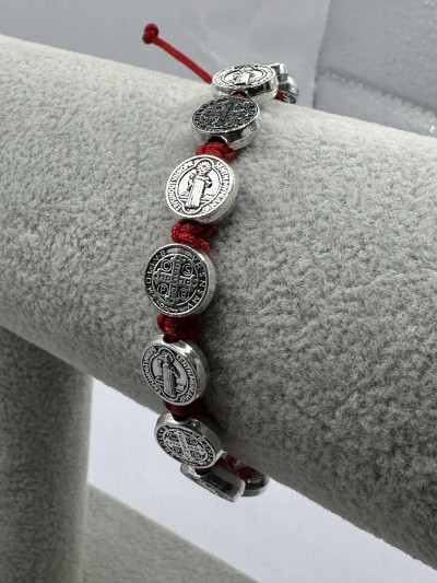 Nursiai Szent Benedek medálos piros karkötő