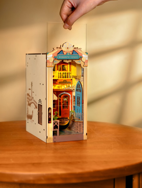 Utazz el Velence romantikus világába ezzel a lenyűgöző 3D könyvsarokkal! A modell a város ikonikus hangulatát idézi meg: csatornák, elegáns gondola, gótikus híd, virágos erkélyek és lágyan megvilágított ablakok adják a jelenet magját. A részletes faelemek és a különleges háttérvilágítás együtt igazi mediterrán bájt visznek a könyvespolcra.