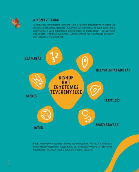 A könyv a matematika hat alaptevékenységére épül (Alan J. Bishop kutatásai alapján): számlálás, tájékozódás, mérési helyzetek, tervezés, játék, magyarázat.