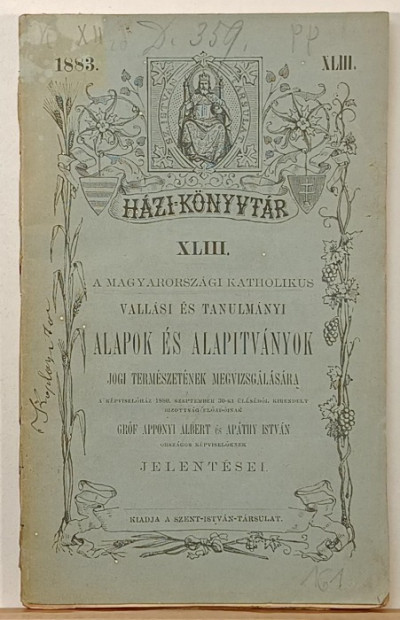 szent istván társulat | 1883 | MAGYAR nyelvű | IRKAFŰZÖTT | 125 oldal
