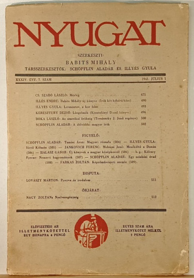 Nyugat- 1941. július 1 - XXXIV. Évf. 7. szám