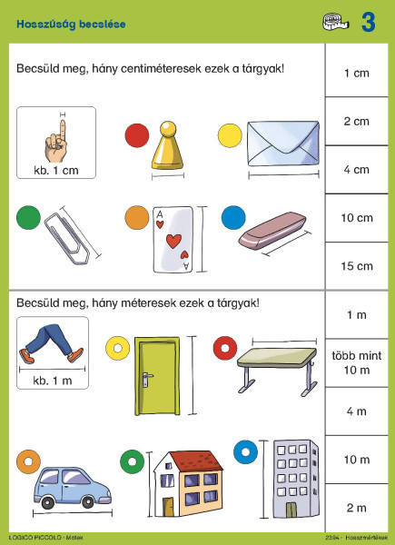 bennük a tárgyak fizikai tulajdonságai, és képesek lesznek közvetlen és közvetett összehasonlításokat is végezni. A kártyacsomag segítséget nyújt abban, hogy a gyerekek megértsék és használják a centimétert és a métert
