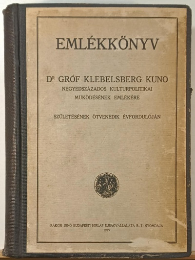 Emlékkönyv Dr. Gróf Klebelsberg Kuno - negyedszázados kulturpolitikai működésének emlékére születésének ötvendeik évfordulóján