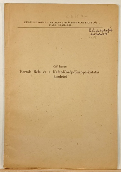 Bartók Béla és a Kelet-Közép-Európa-kutatás kezdetei (dedikált) - Különnyomat a Helikon (Világirodalom figyelő) 1967/1. számából