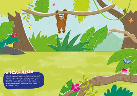 Milyen állatok élnek a dzsungelben, a hegyekben, a tanyán, a mezőn vagy a víz alatt? És melyikük mit csinál? - ki ugrál a fakoronákban, kik masíroznak a fűzben, ki dagonyázik, kis lustálkodik és kinek van mérgező tüskéje?