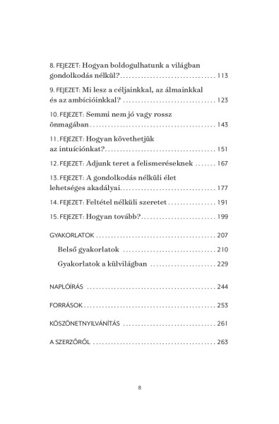 A kötet korántsem arra ösztökél, hogy programozd át az agyad, írd át a múltad és kizárólag pozitív gondolatokat engedj be a fejedbe! A problémáinkat nem vagyunk képesek ugyanazon a tudatszinten megoldani, melyen felmerültek. Minden taktika csak átmenetileg válik be, a tudatunk kitágítása viszont végleges megoldás!