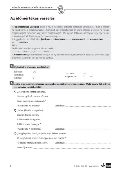 A fejezetek elején található keretes összefoglalók bemutatják az adott évfolyam legfontosabb irodalmi, nyelvtani és helyesírási tudnivalóit: műfaji jellemzőket, költői eszközöket, valamint a legfontosabb szabályokat. Mielőtt egy-egy feladatsor megoldásába kezdenél, érdemes áttekintened ezeket a részeket, hogy felelevenítsd a korábban tanultakat, és szükség esetén kiegészítsd az ismereteid.